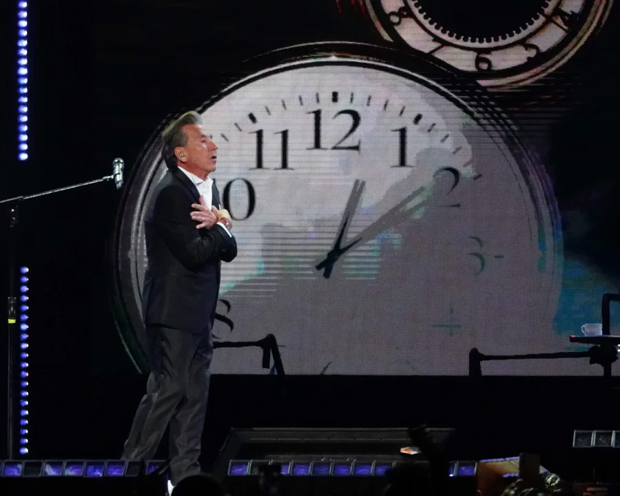 A lo largo de la noche, el artista recorrió los grandes éxitos que lo consolidaron como una de las voces más influyentes de la música en español, en un espectáculo que combinó momentos íntimos con pasajes de alto impacto escénico.