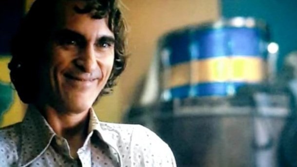 En una escena de “El Guasón”, se ve en primer plano al protagonista, y de fondo, medio borroso un bombo, característico de la barra de Boca, con los colores azul y oro.