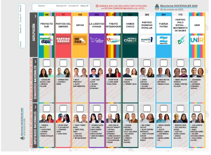 Cada votante recibirá una boleta con dos secciones: una para cargos nacionales y otra para cargos provinciales y municipales. Esta estructura permitirá una votación más ágil y organizada, preservando la libertad de elección en cada categoría.