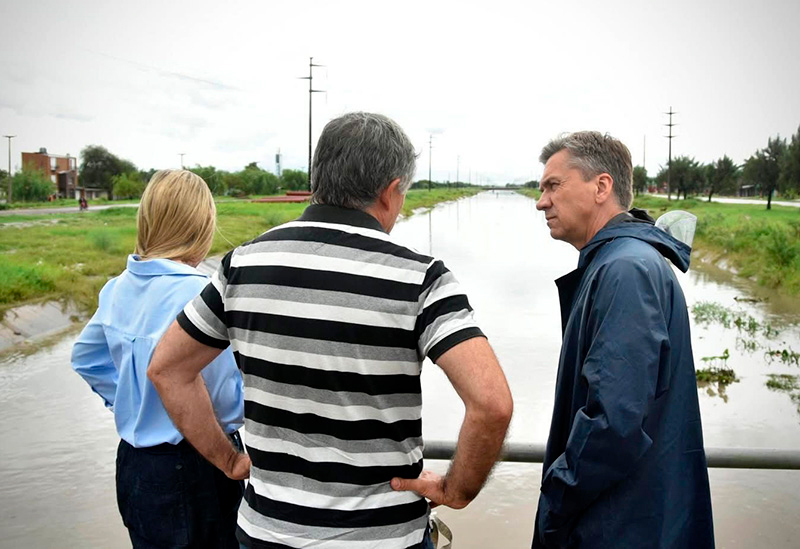 Junto a la secretaria general de Gobierno, Carolina Meiriño, al ministro de Gobierno, Julio Ferro; a Gustavo De Martini, de Vialidad Provincial; a Gustavo Santo, de Defensa Civil y autoridades de Sameep el mandatario, recorrió distintos sectores de la ciudad de Resistencia donde se ejecutan trabajos en el marco del Plan de Contingencia, dispuesto por el Gobierno provincial para mitigar el impacto de las intensas lluvias.