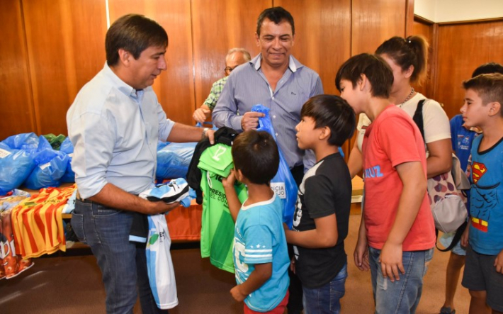 El presidente del Concejo Municipal de Resistencia, Gustavo Martínez, entrego indumentaria y elementos deportivos para equipos de fútbol femenino y masculino, infantil, y veteranos; de vóley, hockey y para agrupaciones de carnavales barriales. Adelantó que vienen trabajando en una idea para este año para promover la retribución de estas entregas con acciones comunitarias por parte de los beneficiados y “así devolver este apoyo con tareas sociales en beneficio de la comunidad”.