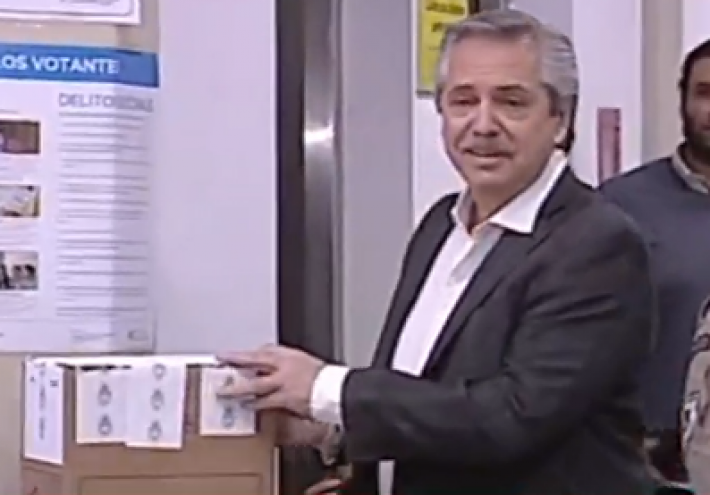 El precandidato a presidente por el Frente de Todos, Alberto Fernández, aseguró hoy que estaba "muy contento" y "muy tranquilo", que es "una elección muy importante", sobre todo "para quienes alguna vez no vivimos en democracia" y recordó que a partir de las PASO, "los argentinos deciden el futuro", tras votar en la Universidad Católica Argentina (UCA), en Alicia Moreau de Justo 1600.