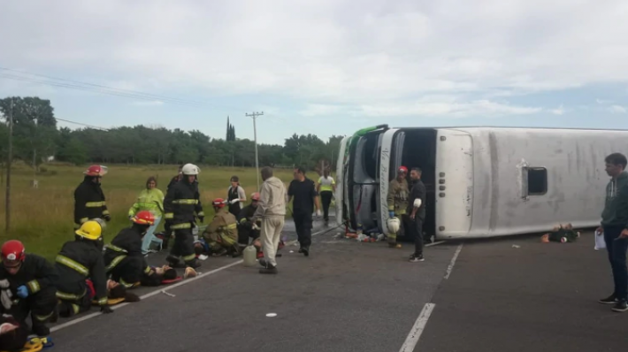 El accidente ocurrió en el kilómetro 141 y, tras volcar, el colectivo quedó cruzado sobre la calzada.