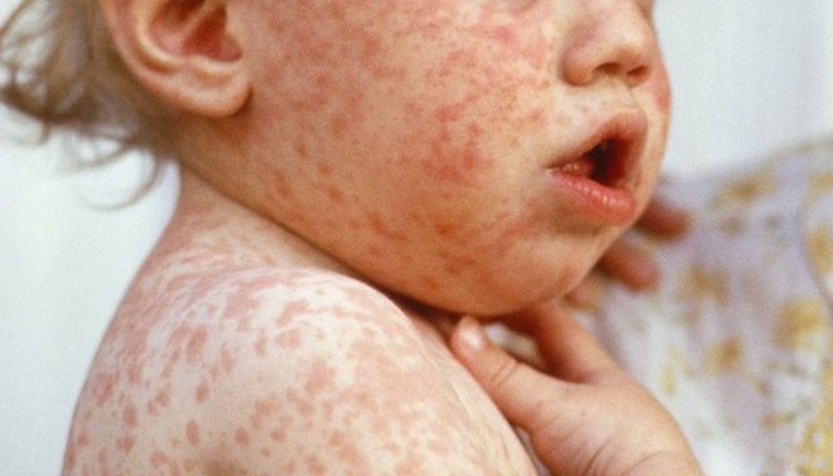 Esta enfermedad puede contagiarse cuando una persona habla, tose o estornuda, lo que produce fiebre, tos seca, resfrío, dolor de garganta, conjuntivitis, manchas blancas diminutas dentro de la boca y demás sintomatología.
