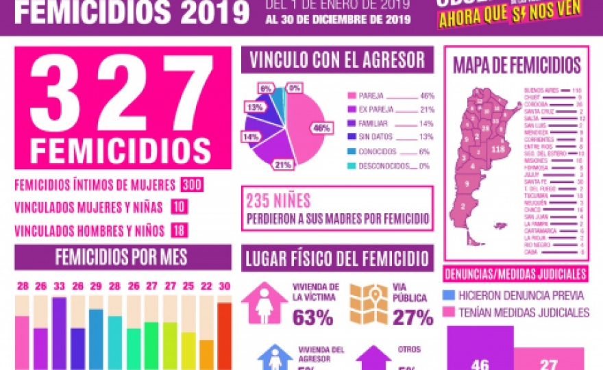 Desde el Observatorio de las Violencias de Género “Ahora Que Sí Nos Ven” dieron a conocer las cifras de femicidios en Argentina entre el 1 de enero y el 30 de diciembre de 2019, elaboradas a partir del análisis de medios gráficos y digitales de todo el país.