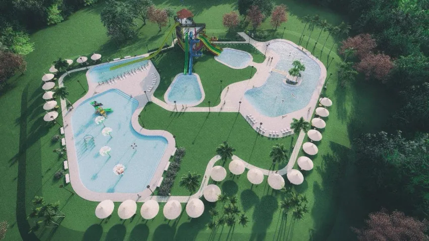 En la primera etapa de la obra, que ya se encuentra con un importante grado de avance, el parque contará con cinco piletas con diferentes profundidades, toboganes de distintas dimensiones y juegos infantiles.