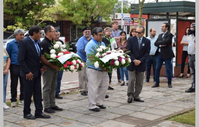 Luego del acto el Intendente junto a los ex combatientes se dirigieron a la plaza Juan B. Justo donde depositaron una ofrenda floral en el monumento de los Caídos en Malvinas.
