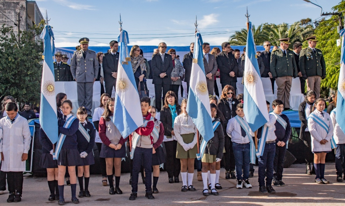 El acto estuvo encabezado por el intendente Gerardo Cipolini; quien estuvo acompañado por el secretario de Gobierno, Bruno Cipolini y presidente del Concejo Deliberante Municipal, Pedro Egea. Además, estuvieron presentes el director de la Regional Educativa VII, Rogelio Mosqueda; concejales, funcionarios del gabinete municipal, diputados provinciales, autoridades eclesiásticas; policiales y de Gendarmería Nacional, alumnos, docentes y directivos de los distintos establecimientos de nivel primario de nuestra ciudad y público en general.