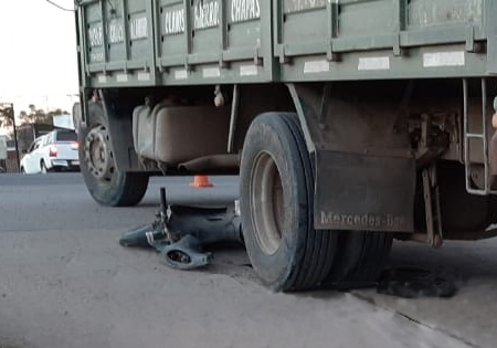 El accidente ocurrió esta tarde en calle 6 y colectora sur. El motociclista quedó debajo del camión. Falleció de camino al hospital.