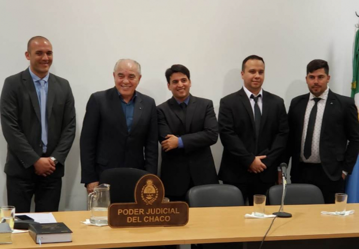 El Procurador Canteros tomó juramento hoy en el SUM del Juzgado de Faltas de Sáenz Peña a cuatro de los seis nuevos ayudantes: Jorge Frías, Villa Angela, Enzo Gustavo Herrera en Charata, Mario Omar Torres, Juan José Castelli y Mario Guillermo Britez en Sáenz Peña.