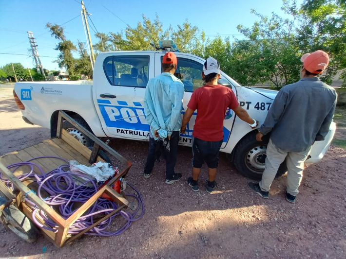 Los sospechosos, domiciliados en barrio Belgrano, transportaban un carro de fabricación casera, 30 metros de cable subterráneo de 4mm y dos vías férreas de 1 metro de largo y cuatro de 30 centímetros de largo.