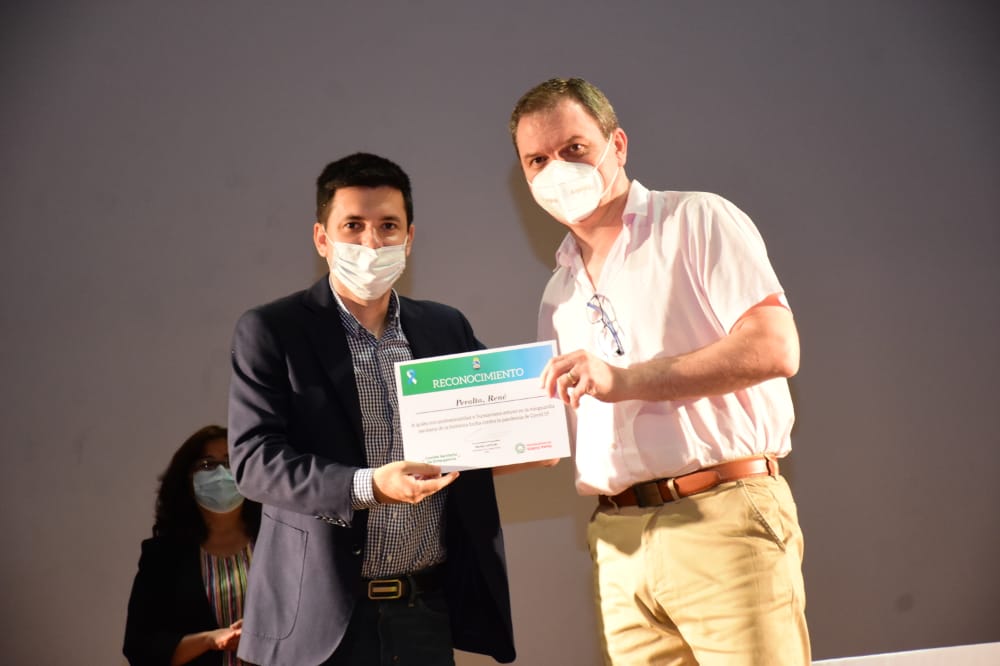 Los reconocimientos, por su parte, se entregaron a la Unidad Médica Educativa UNCAus, por brindar servicios a la ciudadanía de Sáenz Peña y localidades vecinas; a las clínicas que dieron espacios de atención a pacientes con COVID-19 y realizaron servicios a la comunidad en general; y a los Laboratorios de Análisis Clínicos Privados. Además, hubo un reconocimiento al Hospital 4 de Junio ‘’Doctor Ramón Carrillo’’ que fue un bastión importante en la lucha contra la enfermedad, recibiendo a pacientes y realizando testeos y vacunación. Al equipo del programa Detectar, que a través de camiones sanitarios y postas fijas en el Hotel Güalok, Centro Juvenil Cooperativa Sáenz Peña, Ferichaco y Consultorio Febril del Hospital, aportaron a la detección de casos. Por su parte, se reconoció al Hotel Güalok que actuó como centro de aislamiento; al TRAKEO, equipo encargado del seguimiento telefónico de pacientes aislados en sus domicilios; y a la Región Sanitaria VII que abarca la mayoría de las localidades del interior. Por último, al Instituto Nacional de Tecnología Agropecuaria (INTA) que cedió una centrífuga, que permitió a la ciudad ser la primera en el interior, en llevar a cabo los test de PCR.