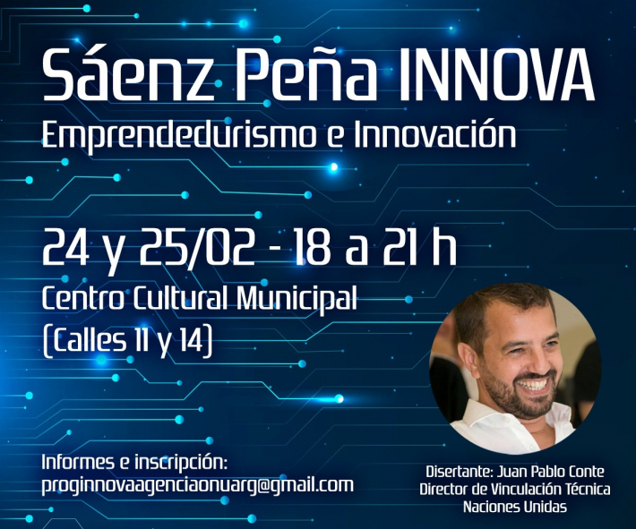 La Agencia CIFAL de la Organización Naciones Unidas (ONU) llega a Sáenz Peña con un entrenamiento de alto nivel para emprendedores. Se trata del Programa INNOVA, sobre emprendimiento e innovación, que se desarrollará los días 24 y 25 de febrero de 18 a 21 horas, con la disertación de Juan Pablo Conte, director de vinculación tecnológica de la Agencia CIFAL de Naciones Unidas Sede Argentina.