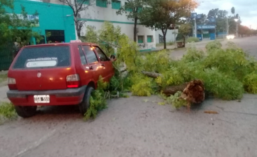 Se tomó conocimiento de la caída de una rama de árbol sobre la cinta asfáltica en calle 9 entre 000 y 0000 del Barrio Reserva Este. Un auto la chocó y sufrió daños. El conductor no resultó herido.