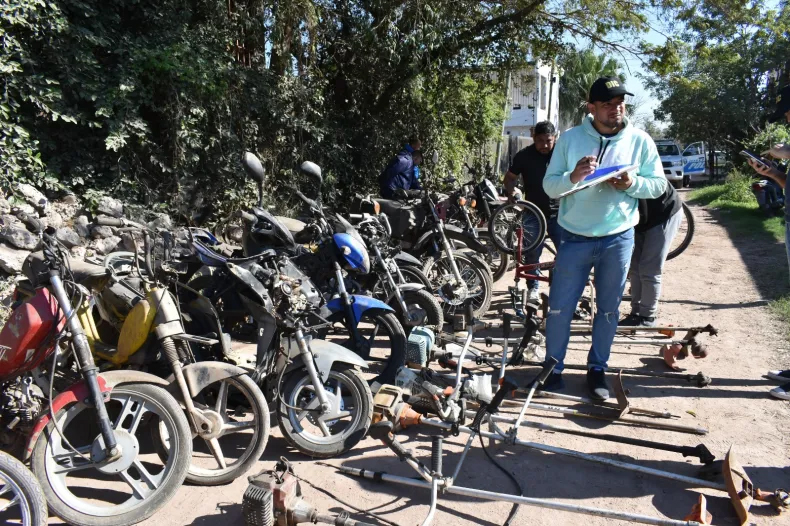 El operativo también arrojó el secuestro de 11 motoguadañas, dos bicicletas, dos equipos de aire acondicionado split de color blanco, una plancha elevadora de moto, 20 motores (tanto desarmados como enteros), 56 tapas de cilindro, 14 llantas, 50 suspensiones (delanteras y traseras), 31 caños de escape, 13 cigüeñales, 25 bloques de motores, 22 carburadores, 8 asientos, un equipo de música y varios plásticos de motocicletas.