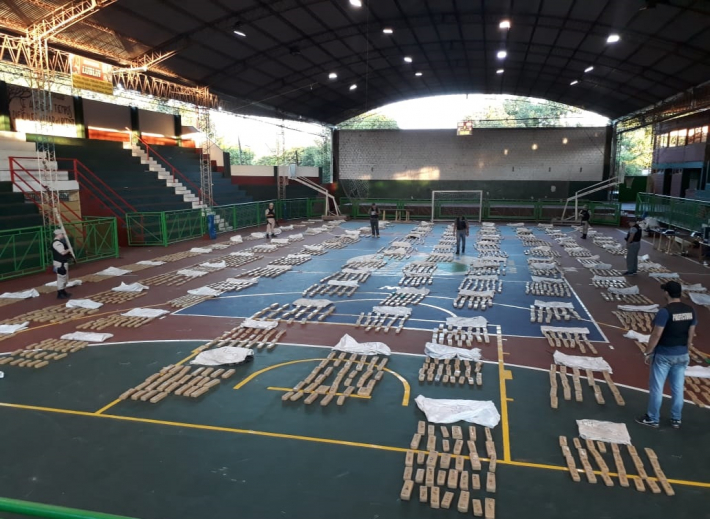 Los prefectos trasladaron el cargamento hasta un gimnasio de la zona, donde distribuyeron los "ladrillos" que estaban dentro de los bolsones y contabilizaron un total de 3.801 panes de la mencionada sustancia, por un peso de más de 2.250 kilos.