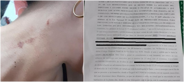 La denuncia, que fue realizada ayer en la comisaría Tercera de Resistencia, fue publicada por la propia víctima, Viviana Arguello, de 32 años, en su cuenta de Facebook, la mujer pide de forma desesperada que se viralice “esto es lo que hace Facundo Sampayo con las mujeres”.