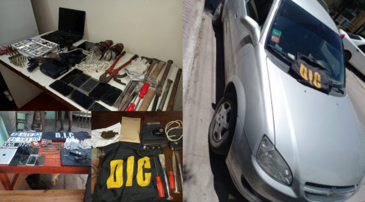 Cabe mencionar que entre los detenidos está un exempleado del comercio asaltado. Además, se indicó que en los operativos incautaron el auto en el que se movilizaba la banda, patentes truchas, armas de fuego, una gran suma de cartuchos, estupefacientes y herramientas con la que realizaban los boquetes.
