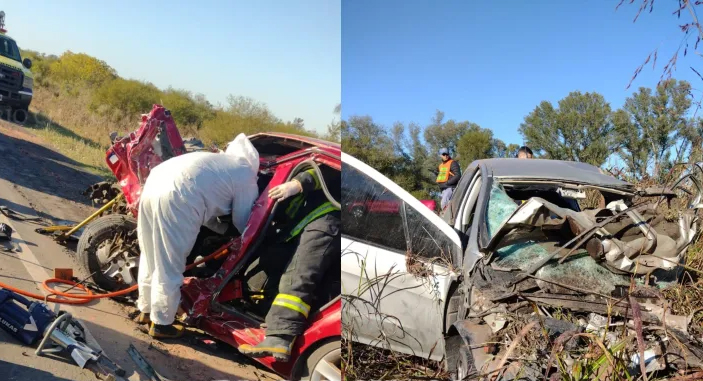 Dos personas perdieron la vida esta mañana tras un terrible accidente de tránsito protagonizado por dos vehículos cerca de Napenay. Por razones que la Policía trata de establecer, un Peugeot 408 rojo y otro Peugeot 408 gris plata colisionaron en forma violenta y dos de los ocupantes quedaron atrapados entre los hierros retorcidos.