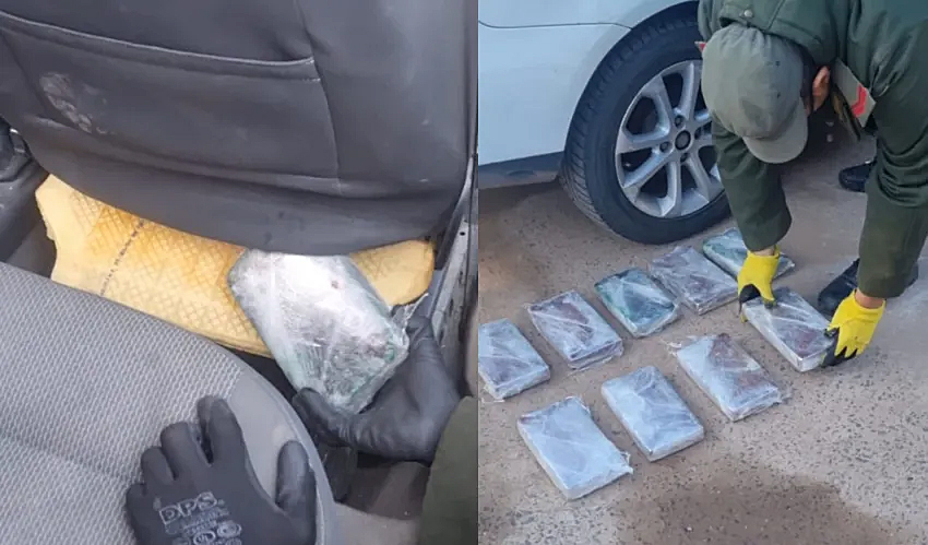Al momento de la inspección del vehículo, los gendarmes observaron ciertas irregularidades en el respaldo del asiento del acompañante por lo que procedieron a levantar el tapizado y constataron la presencia de 9 paquetes rectangulares. Ante la situación, los mismos fueron sometidos a la prueba narcotest que arrojó resultado positivo para cocaína con un pesaje de 9,829 kilos .