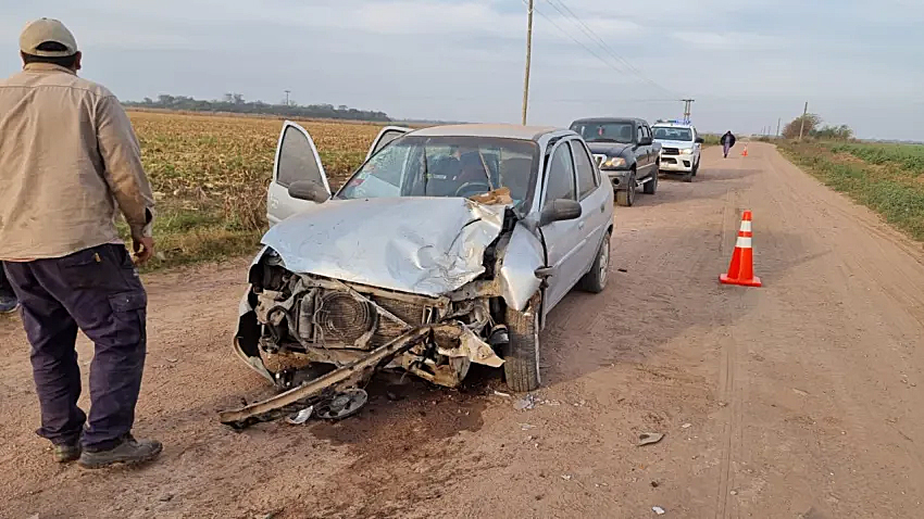 Violento choque frontal entre dos autos en un camino rural cerca de Pinedo