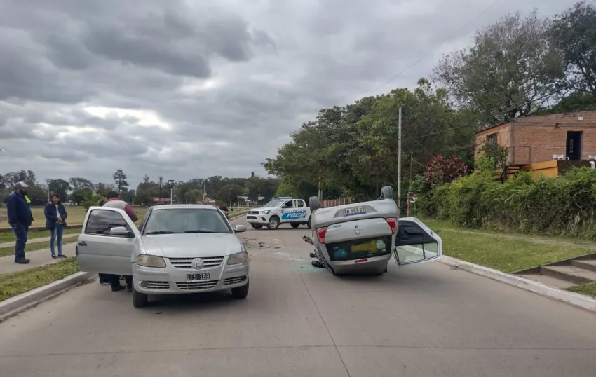 Producto del impacto, el Clio terminó volcando, por lo que sus ocupantes debieron ser asistidos en el lugar por una ambulancia.