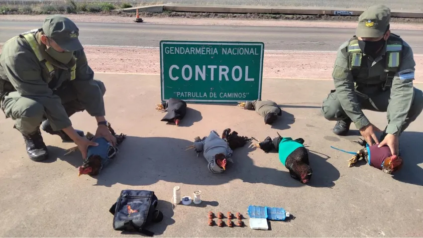Como resultado de un control realizado por Integrantes de la Sección "Villa Ángela" perteneciente al Escuadrón 1, se constatató la presencia de seis gallos de riña, los cuales eran trasladados envueltos y atados con telas. Además, los gendarmes hallaron ocho espuelas metálicas, 19 picos metálicos y dos agujas.