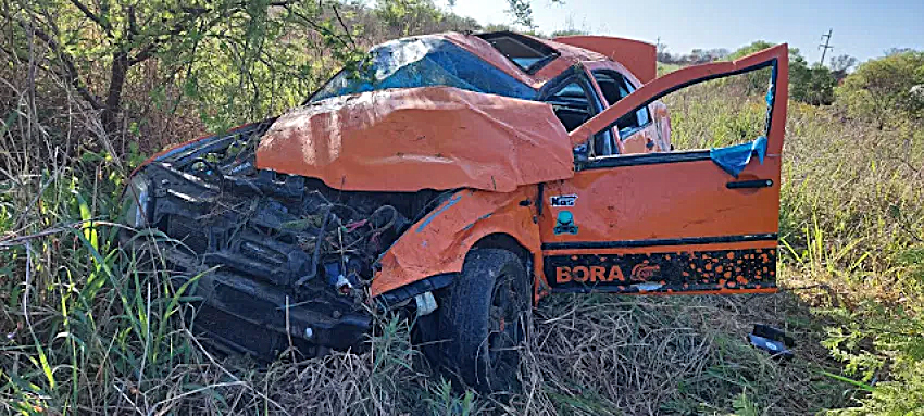 Alertados por el accidente, efectivos de la comisaría local acudieron al lugar cerca de las 7:20 de este sábado, donde encontraron el vehículo destruído pasando la banquina.