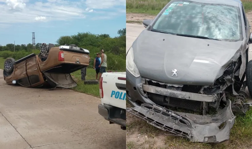 La camioneta trató de pasar al auto en el mismo momento que este último giró para dirigirse hacia un domicilio particular y colisionaron. Así fue que la camioneta volcó y ambos vehículos quedaron sobre la cinta asfáltica. Afortunadamente, nadie resultó herido gravemente. El accidente sucedió ayer al mediodía.