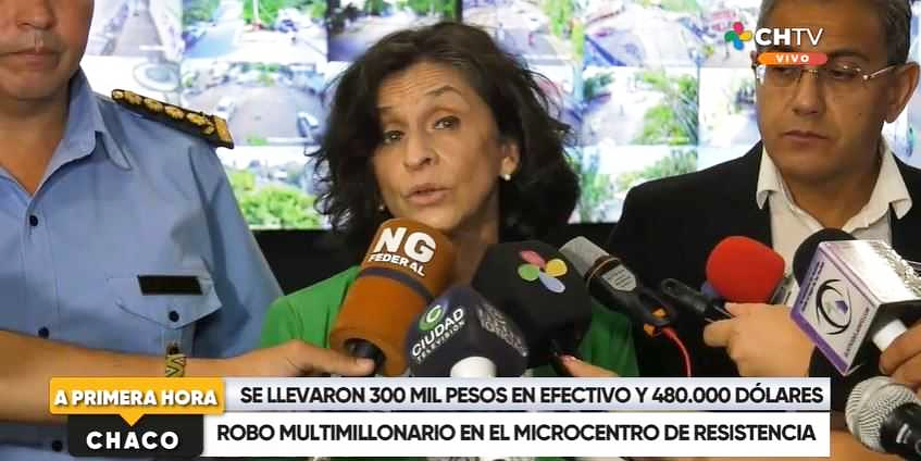 La ministra de Seguridad de Chaco, Gloria Zalazar, se refirió al robo multimillonario que ocurrió ayer en el microcentro de Resistencia en el que se llevaron 300 mil pesos y 480.000 dólares.