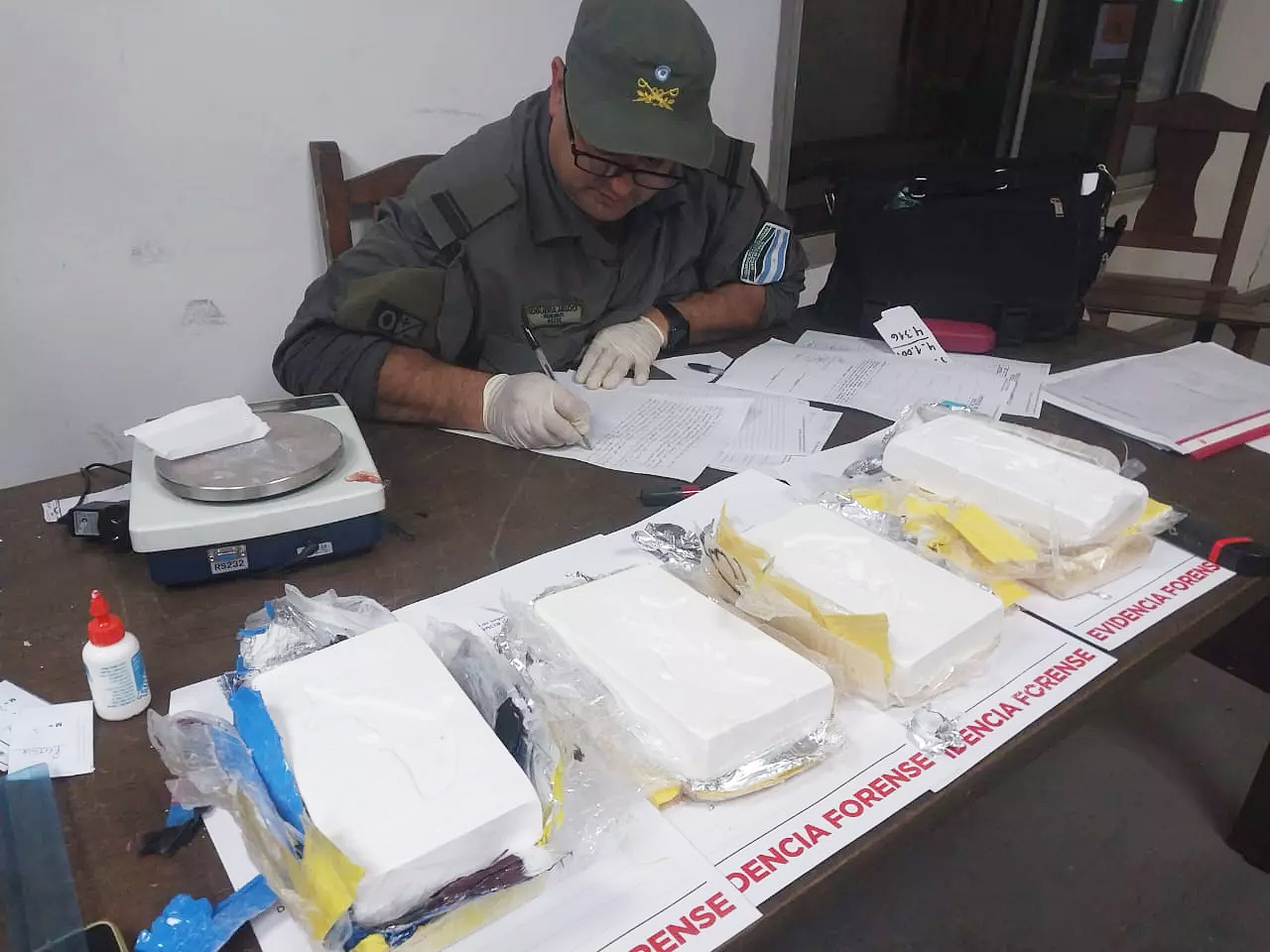Con presencia de testigos hábiles y con el apoyo del Grupo Criminalística Estudios Forenses del Escuadrón 51 “Fontana”, se verificó que los paquetes tenían cocaína, con un peso total de 4.316 gramos.
