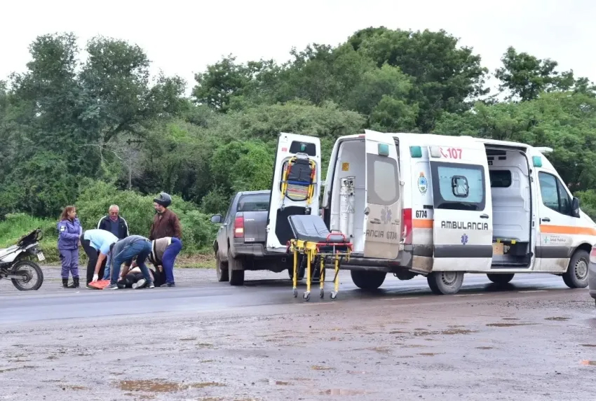 El hecho se produjo en medio de la llovizna pasado el mediodía. La mujer, que acompañaba al motociclista, fue trasladada al Hospital Perrando.