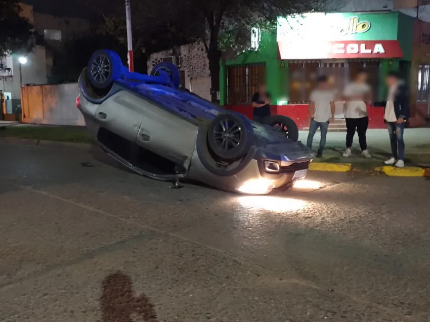 El choque se produjo entre un Fiat Palio conducido por una mujer de 37 años y un Renault Sandero manejado por un menor de edad de 17 años. La Policía no confirmó cómo se produjo el accidente aunque en las imágenes se ve como el vehículo del adolescente quedó volcado sobre la calle sobre su parte superior.