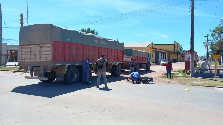 El hecho ocurrió alrededor de las 13:10 y los efectivos policiales acudieron al lugar para asistir a los protagonistas del fatal accidente que manejaban una motocicleta gilera 110 y un camión Fiat que tenía acoplado.