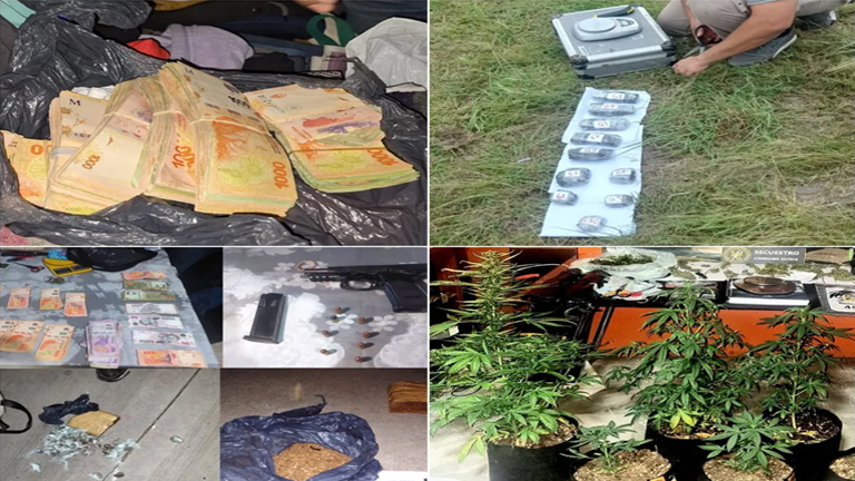 Operativos antidrogas: secuestraron 2 kilos de marihuana, 1 kilo de cocaína y más 1 millón de pesos