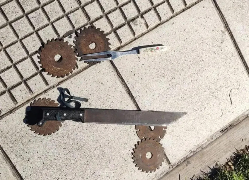Los efectivos le revisaron y le encontraron un machete que tenía escondido en su ropa, y varios discos de corte. Cuando fue detenido, el sujeto gritó varias veces: "Soy Dios y voy a matar al presidente".