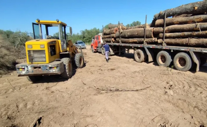 Ante este hecho, se procedió al secuestro de dos camiones con sus respectivos acoplados, cargados con rollos quebracho blanco y colorado, una máquina de carga y una motosierra.