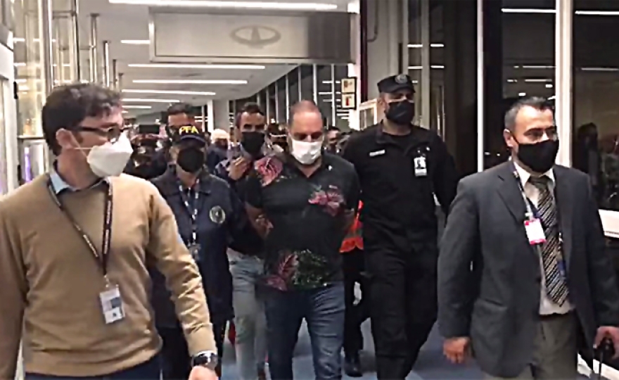 El empresario Leonardo Cositorto, líder de Generación Zoe, llegó pasada la medianoche del martes a la Argentina desde República Dominicana, esposado y custodiado por personal de Interpol. Había sido capturado en un country del país centroamericano en medio de una investigación que lo tiene como sospechoso de fraude. Según se observa en las imágenes, el hombre arribó en un asiento de clase económica y con la misma camisa que tenía cuando fue apresado.