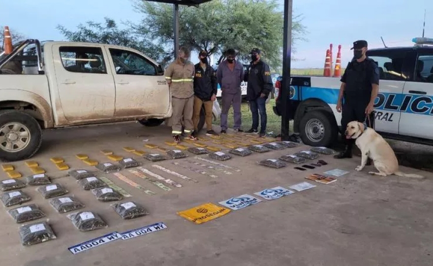 Durante el procedimiento, los efectivos detuvieron a dos hombres, y secuestraron 31 ladrillos de marihuana con un peso total de casi 26 kilogramos; 26 bolsas de nylon con "cogollos o flores de marihuana" con un peso total de casi 14 kilogramos; tres carteles apócrifos de "Vialidad Nacional” y dos de la firma "Prosegur" que utilizaban los delincuentes para eludir los controles policiales; tres teléfonos celulares y la suma de 120.000 pesos.