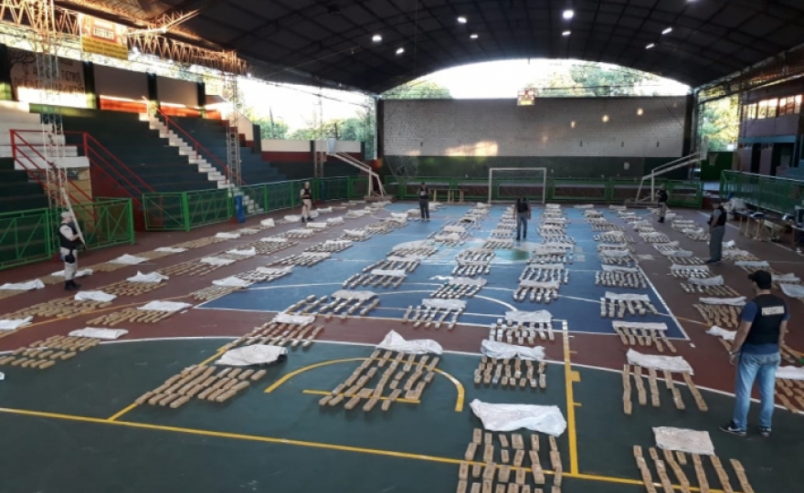 Los prefectos trasladaron el cargamento hasta un gimnasio de la zona, donde distribuyeron los "ladrillos" que estaban dentro de los bolsones y contabilizaron un total de 3.801 panes de la mencionada sustancia, por un peso de más de 2.250 kilos.