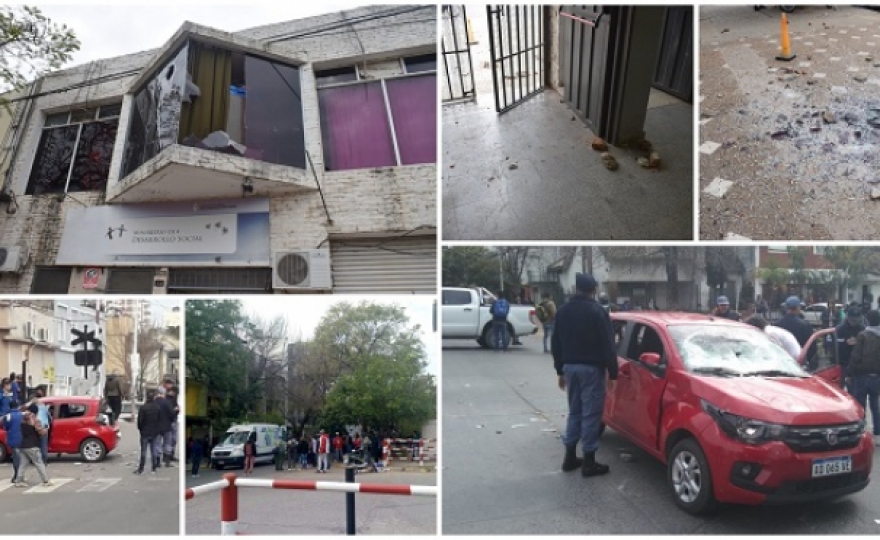En ambos casos, que se produjeron casi en simultaneo, manifestantes de diversos movimientos sociales se manifestaban cortando el tránsito. Por un lado, en el edificio central del Ministerio, sobre 25 de Mayo al 855, fueron cerca de 350 personas las que, en un momento determinado, comenzaron a arrojar piedras y cascotes a las oficinas, rompiendo los vidrios de las mismas. En tanto, el otro grupo de personas que protestaba frente a la sede nacional, Moreno al 67, también terminó con violencia tras el feroz ataque a un automóvil, luego de que la conductora del mismo, avanzara sobre los manifestantes.