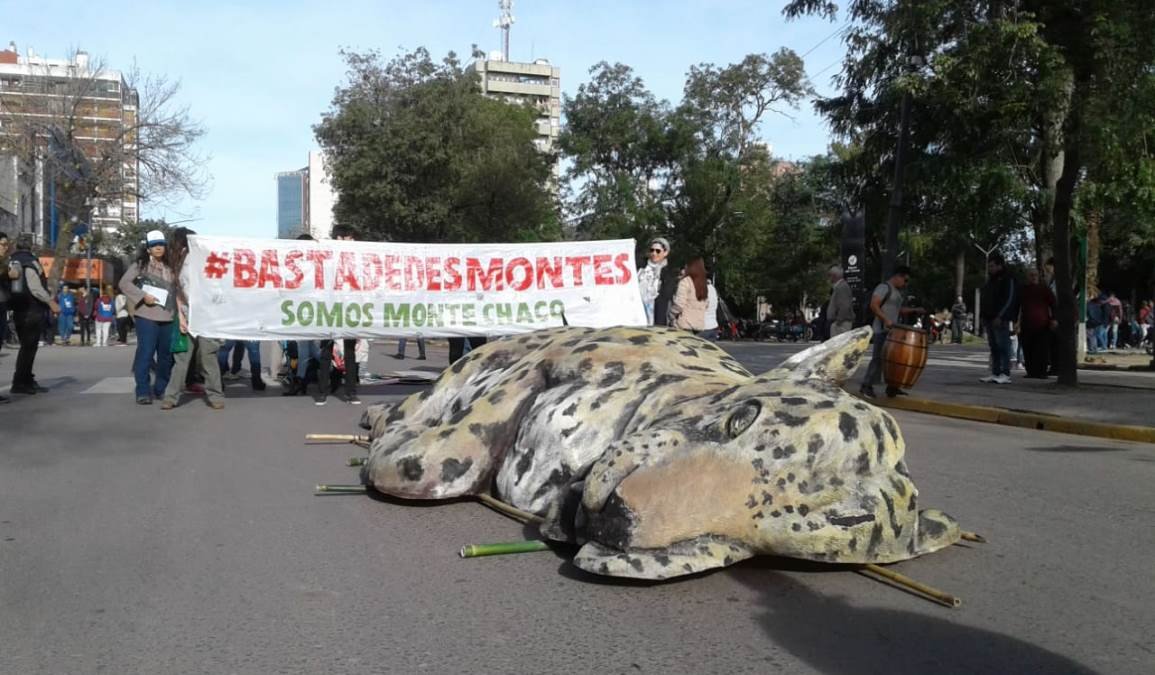 La protesta se realiza en el marco del Día Mundial del Ambiente en defensa del monte chaqueño, para evitar la destrucción del mismo.