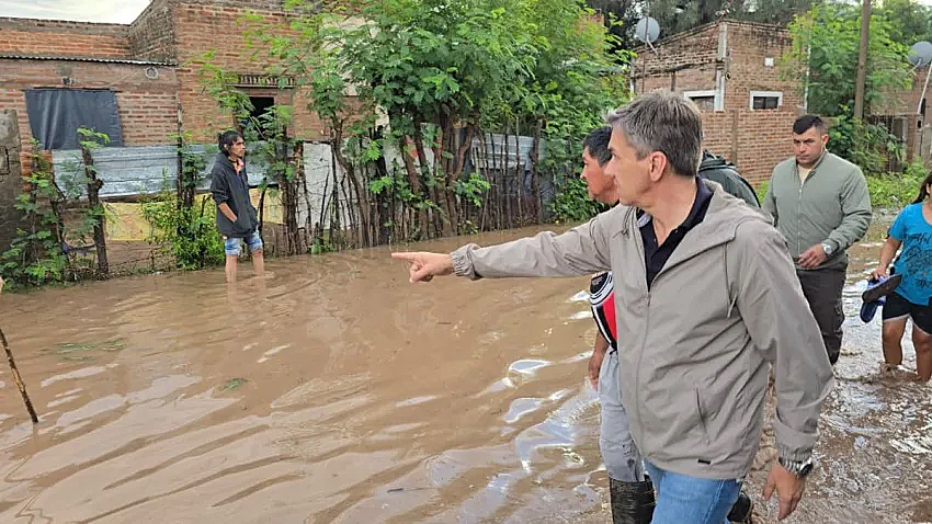 El gobernador Leandro Zdero visitó este lunes los barrios afectados por las inundaciones en Juan José Castelli, tras las intensas lluvias que ya superan los 235 milímetros en la ciudad.