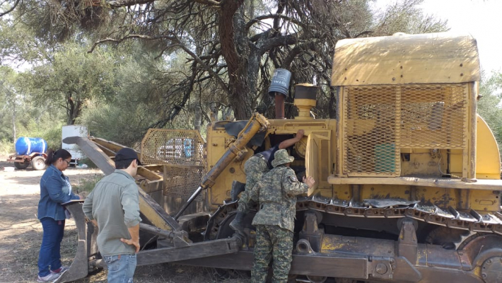 En primer lugar, se constató una tala ilegal en una zona boscosa de una superficie de unas 61,8 hectáreas aproximadamente, donde se secuestraron una topadora con sistema de arranque pulso, tracción tipo oruga con pala metálica, un tractor con pala topadora, sin número de serie y motor visible.