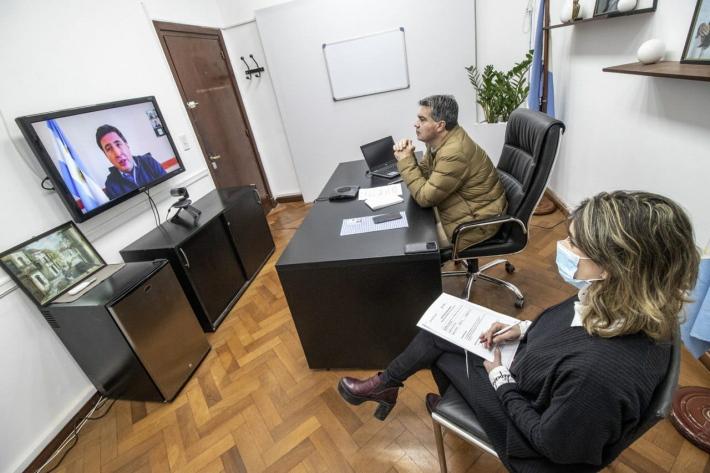 El gobernador Jorge Capitanich junto a la ministra de Desarrollo Social, María Pía Chiacchio Cavana, dialogó mediante videoconferencia con el ministro de Desarrollo Social de la Nación Daniel Arroyo. En la oportunidad se presentó el Programa Potenciar Trabajo, a la vez que se realizó un repaso por los convenios específicos entre el Ministerio de Desarrollo Social de la Nación y el de la Provincia del Chaco. “Es una sumatoria de convenios que equivalen a alrededor de 500 millones de pesos”, aseguró el gobernador.