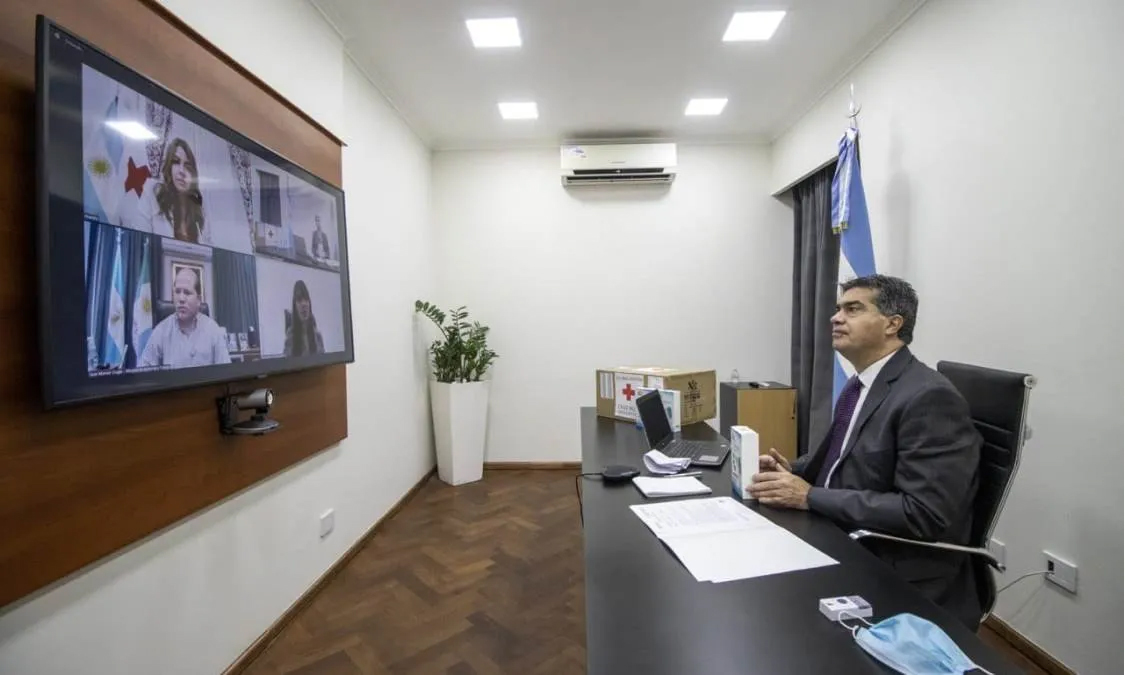 El gobernador Jorge Capitanich encabezó una videoconferencia con la presidenta de la Cruz Roja Argentina filial Corrientes, Mariela Contreras, quien donó 250 termómetros digitales para abordar la detección temprana de síntomas compatibles con Covid-19.
