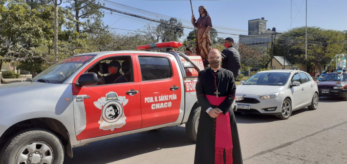 Con el apoyo de la Policía de la Provincia, de la Dirección de Tránsito Municipal y los Bomberos Voluntarios y de la Provincia dio inicio esta caravana que contó con la bendición del obispo de la Diócesis San Roque, monseñor Hugo Barbaro desde la Iglesia Catedral de Sáenz Peña.