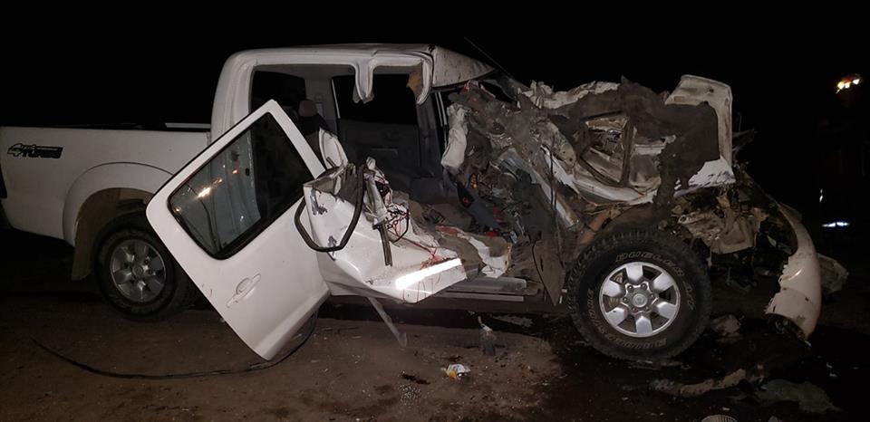 El choque sucedió, alrededor de las 20.30, a un kilómetro del cruce con la ruta 98, entre una Hilux, en el que viajaban dos hombres y otra camioneta Ford 6000, que no tenía luces, y en el que iban tres personas.