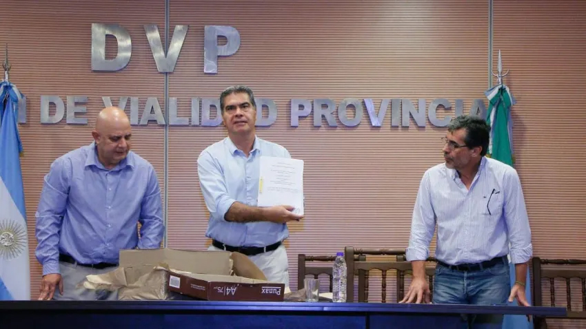 Tres oferentes se presentaron al acto licitatorio realizado este jueves en el salón auditorio de Vialidad Provincial, donde estuvieron presentes el subadministrador Carlos Navarro y el ingeniero jefe Antonio Roselló.