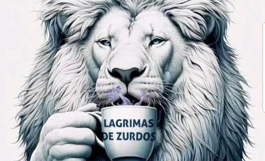 Además, el presidente ilustró su comentario con la foto de un león, sosteniendo una taza con la leyenda: "Lágrimas de zurdos".